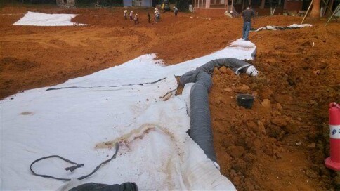 進(jìn)行堵漏維修也容易實(shí)施,還具有自行修復(fù)裂縫的功能。膨潤土防水毯不能直接覆蓋在地基上,還應(yīng)在下面覆一層土層,這層土層與防水毯構(gòu)成保持水體的生態(tài)系統(tǒng),進(jìn)一步提高了防水防滲性能。